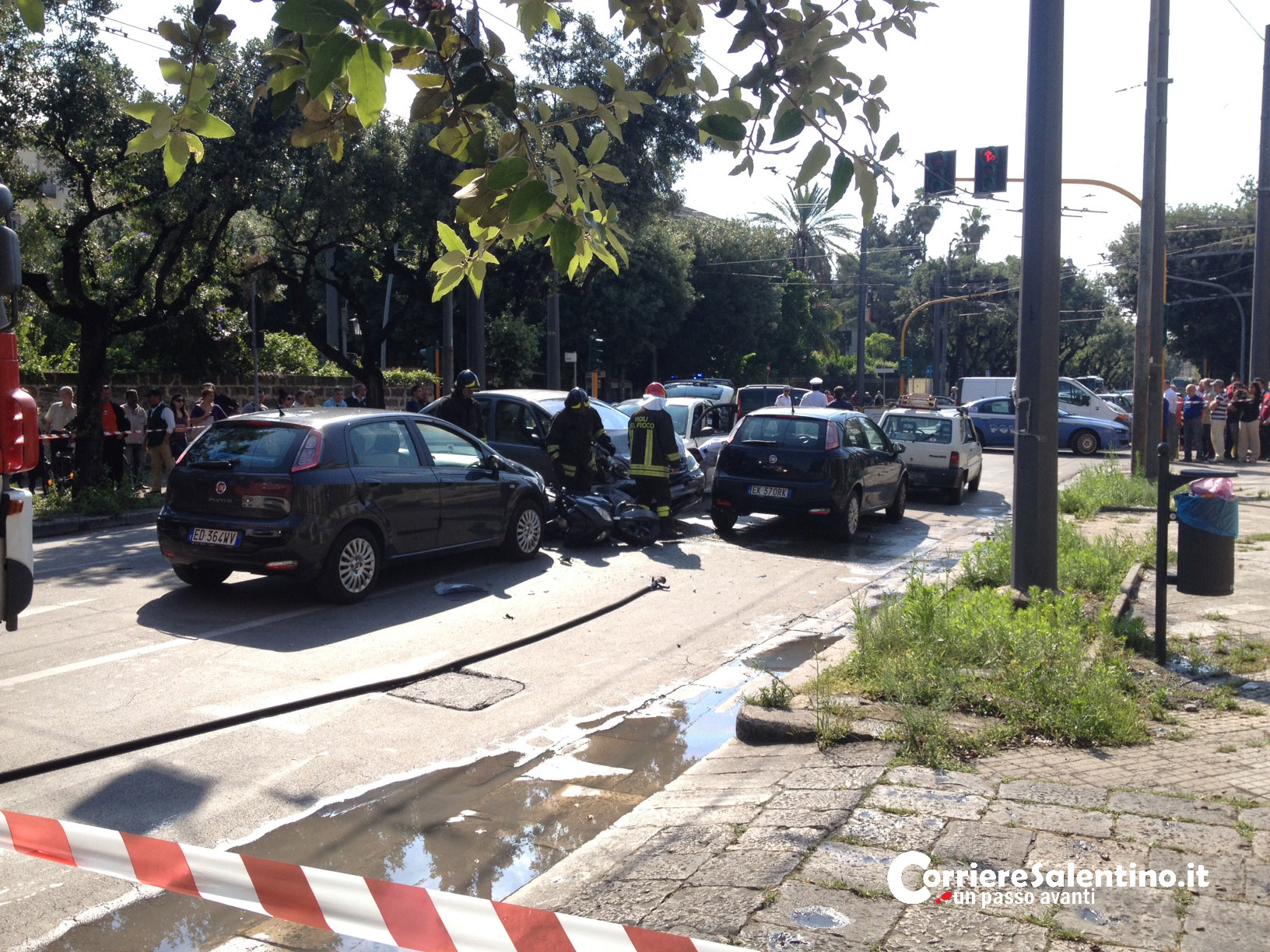 Schianto all’incrocio, coinvolti quattro auto ed una moto: feriti lievi, traffico in tilt a Lecce