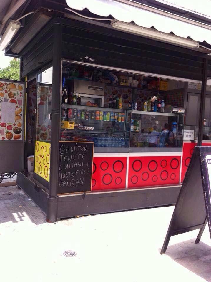 “Genitori tenete lontani i vostri figli dai gay”, cartello omofobo compare davanti ad un chiosco in pieno centro