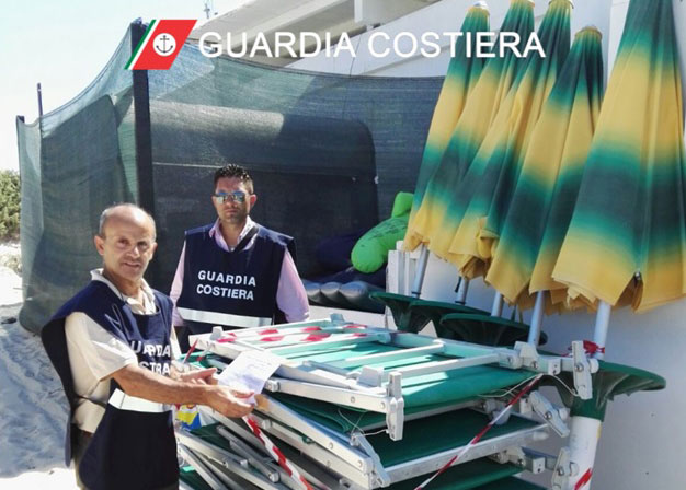 Senza sosta i controlli della Guardia Costiera contro i lidi abusivi: sequestrati ombrelloni, sdraio e attrezzature da spiaggia