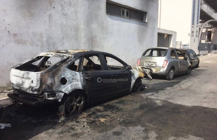 Ancora una “notte di fuoco” a Monteroni: alle fiamme quattro veicoli