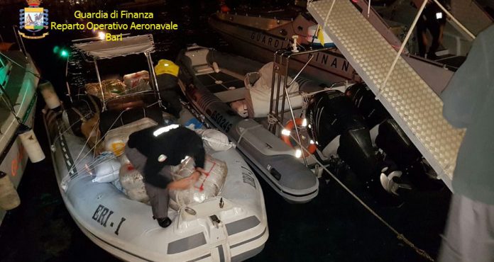 Intercettato e bloccato gommone con oltre 810 chili di marijuana, in manette due scafisti albanesi