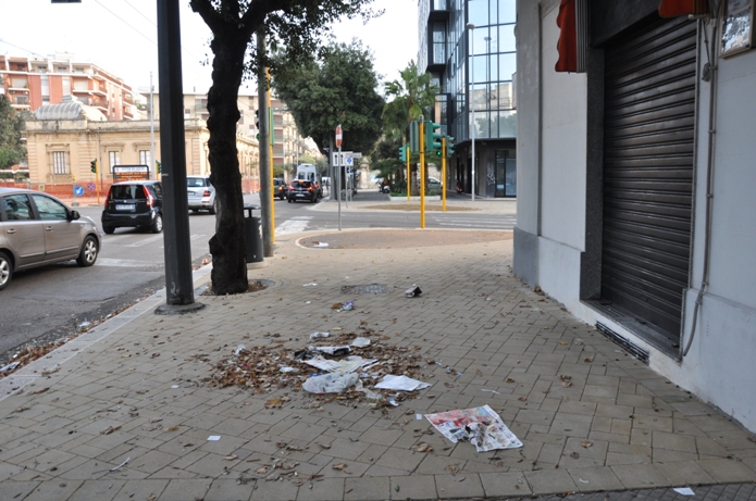 Sui marciapiedi tra cartacce, buste di plastica e foglie secche: la denuncia dello “Sportello dei Diritti”