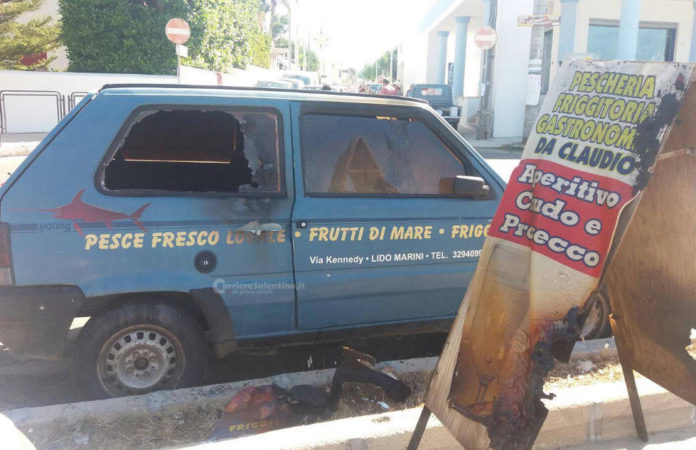 Scatenano le fiamme sfruttando un finestrino aperto, distrutta l’auto dei proprietari di una friggitoria