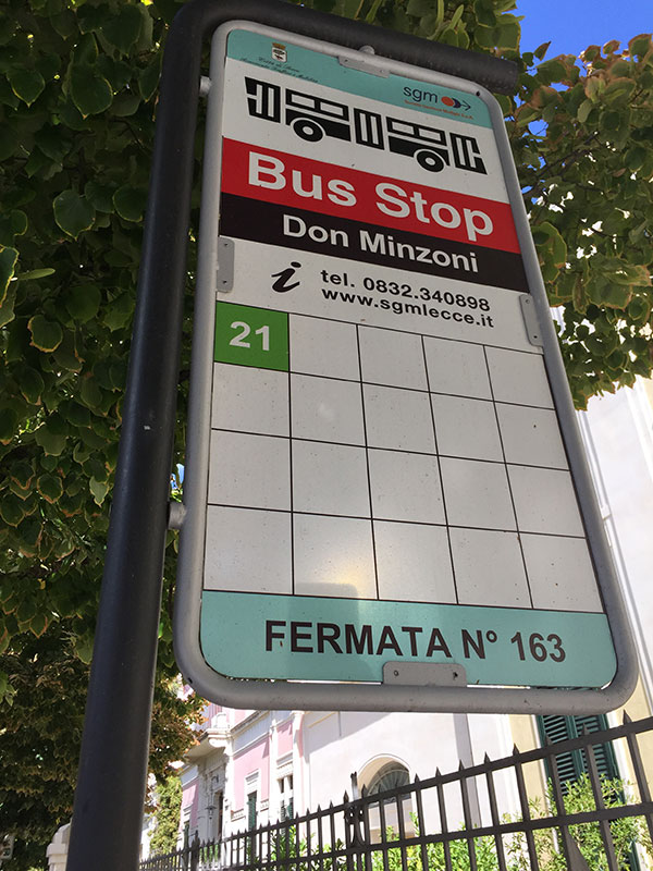 Da Piazza Sant’Oronzo a Porta Napoli nessuna fermata di bus o minibus, sulla strada che si intreccia con via Degli Antoglietta, via Isabella Castriota e via Lubelli: siamo in via Leonardo Prato. Bisogna uscire fuori, sul viale degli studenti per trovare gli autobus. Se il fruitore perde fiducia nel mezzo, come la si può riguadagnare? Se ci vogliono 45 minuti per aspettare la linea 30 (siamo di fronte all’università, all’incrocio con via Calasso), si fa prima a piedi. In una città piccola non possono essere questi i tempi: con la macchina ci vogliono