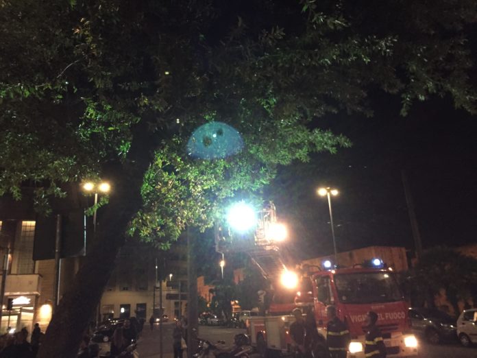 I vigili del fuoco salvano un gattino intrappolato su un albero in Viale Lo Re