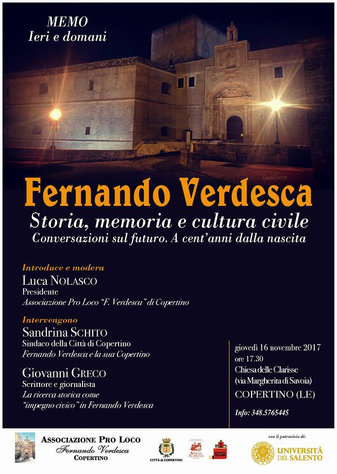 HomeCulturaOggi e domani due appuntamenti per ricordare Fernando Verdesca