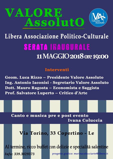 HomePoliticaValore Assoluto: libera associazione politico - culturale, Serata inaugurale venerdì 11 maggio