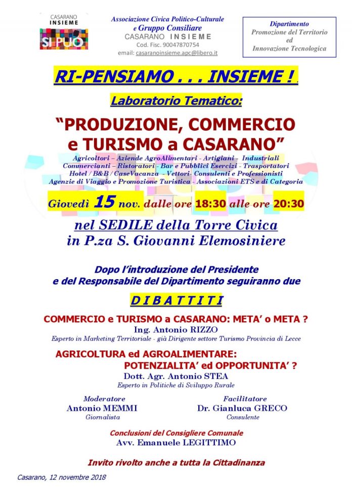 “Laboratorio progettuale”: la nuova idea di lavoro per lo sviluppo economico lanciata dal consigliere Legittimo