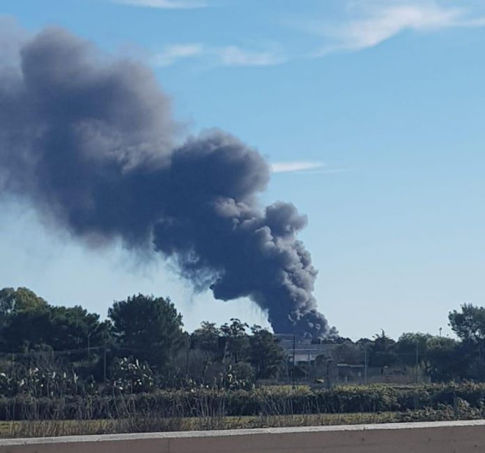HomeCronacaA fuoco il deposito di un'azienda edile. Si teme per la salute