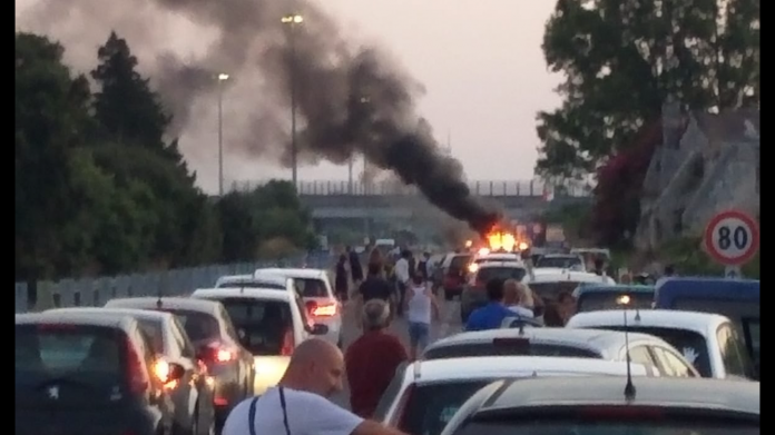 Auto in fiamme sulla Lecce-San Cataldo: lunghe code e traffico in tilt