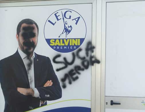 HomePoliticaVandali scatenati contro la sezione della Lega di Racale: “Non ci fermeranno”