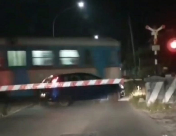 Le sbarre si abbassano e l’auto rimane bloccata sui binari