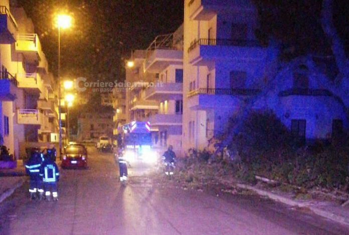 Vento e pioggia sferzano Gallipoli: “spazzati” via alberi, cartelloni e impalcature. Danni e disagi