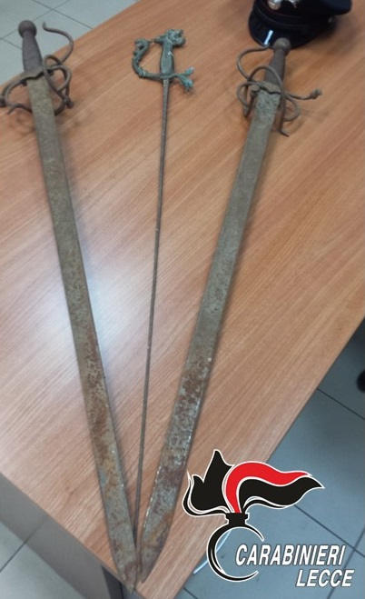 A spasso in auto con spade e fioretto, “Trovate durante lavori di ristrutturazione”: in due nei guai