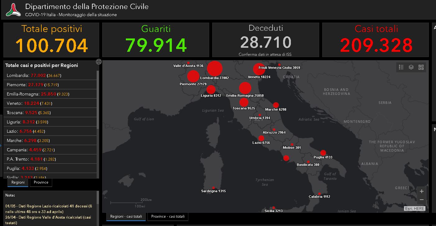Coronavirus, il bilancio del 2 maggio in Italia: 474 morti, 1.900 nuovi contagi e 1.665 guariti