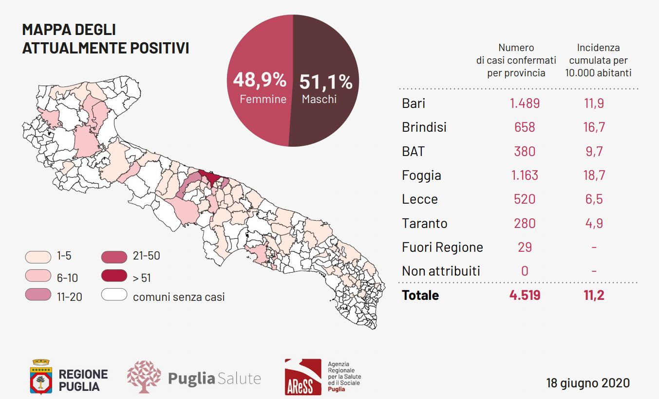 Covid-19, dopo due giorni senza contagi altri 4 positivi e due decessi in Puglia. Indenne la provincia di Lecce