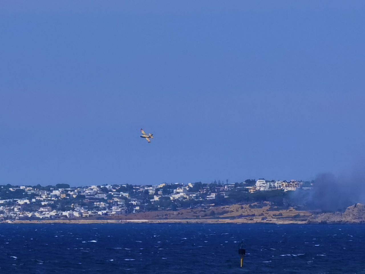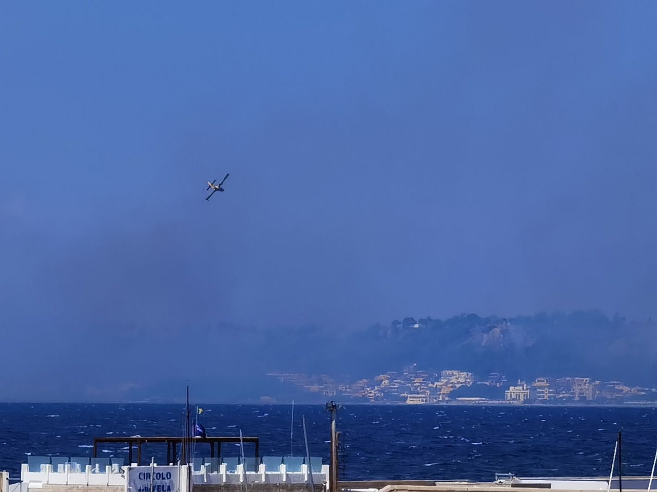 Forti raffiche di vento ed il fuoco si estende: vasto incendio minaccia case. Intervengono canadair