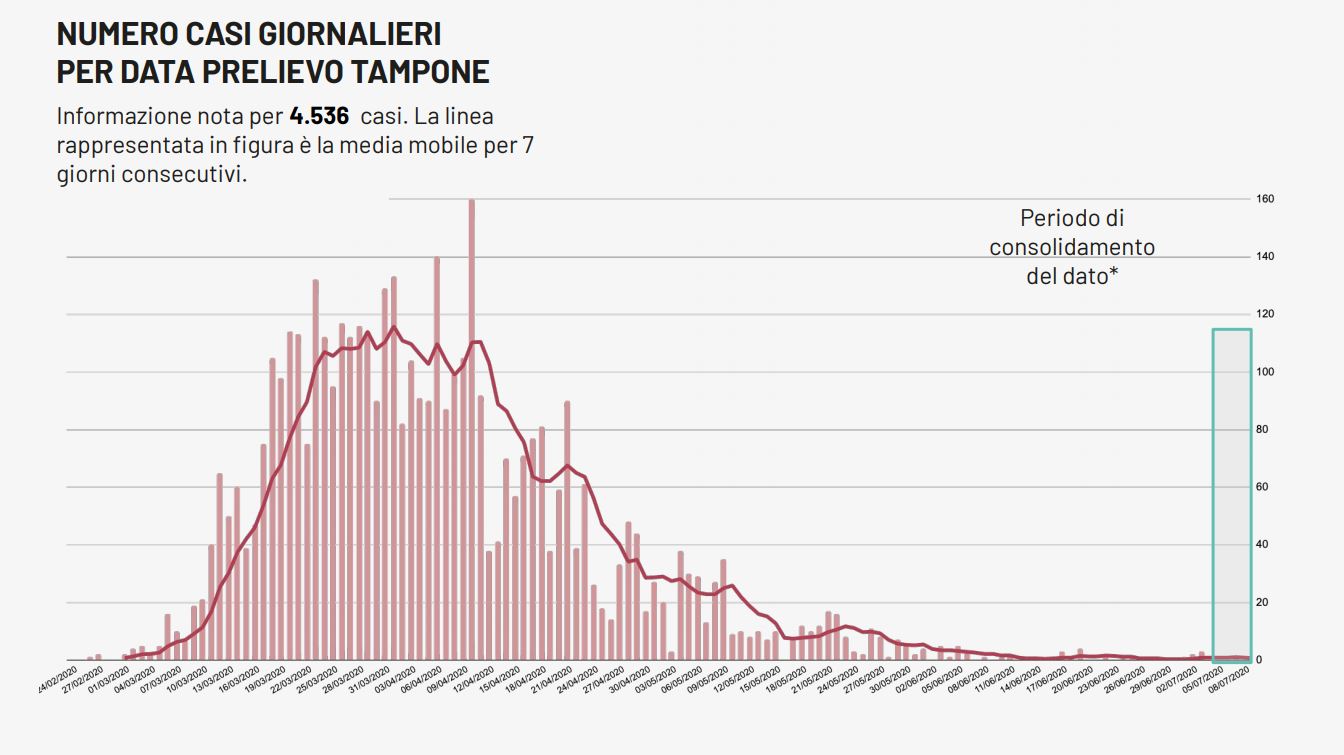 Nel bollettino epidemiologico l’unico tampone positivo è quello scoperto ieri nel brindisino: un turista lombardo