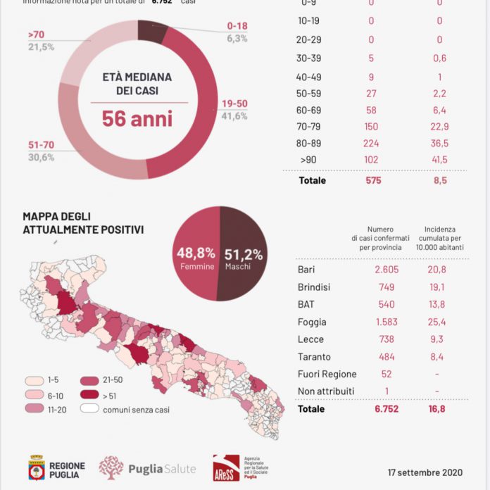 HomeSaluteCovid, 63 casi in Puglia, 6 a Lecce. Melissano tra i paesi...