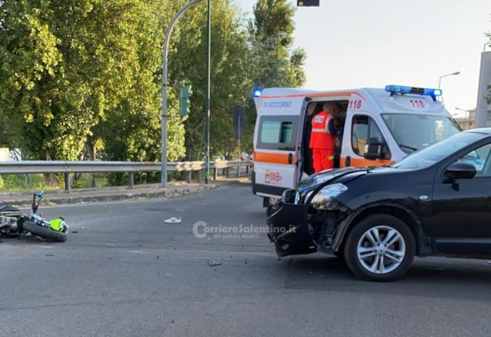 HomeCronacaViolento schianto all'incrocio tra auto e moto, giovane centauro in ospedale con...