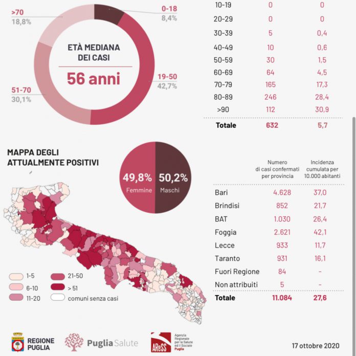 Covid, cresce il contagio: 350 positivi in Puglia, 9 nel leccese. 401 ricoverati. Nuovi casi a Lecce e Surbo