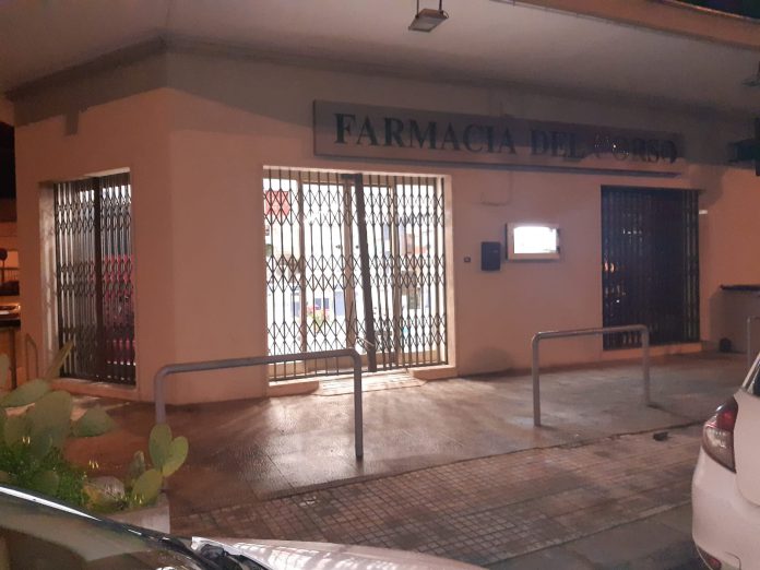 Furto in farmacia in pieno centro: bandito solitario forza la serranda e fugge con due registratori di cassa, bottino 400 euro