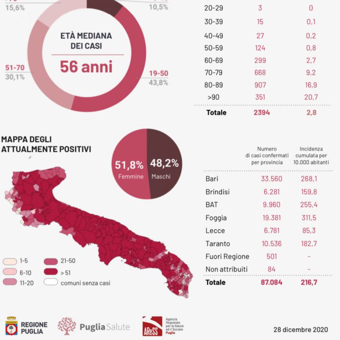 HomeSaluteCovid, 645 casi: 86 nel leccese, con 3 decessi. Leggero aumento dei...
