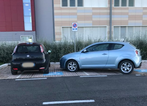 Foto denuncia al Dea, macchine parcheggiate nell’area disabili e alle rimostranze: “L’auto sta bene così”