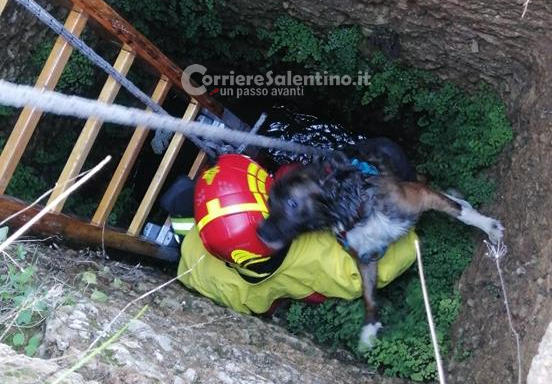 Sfugge al controllo dei proprietari e precipita in un pozzo: in soccorso di Nino arrivano i vigili del fuoco