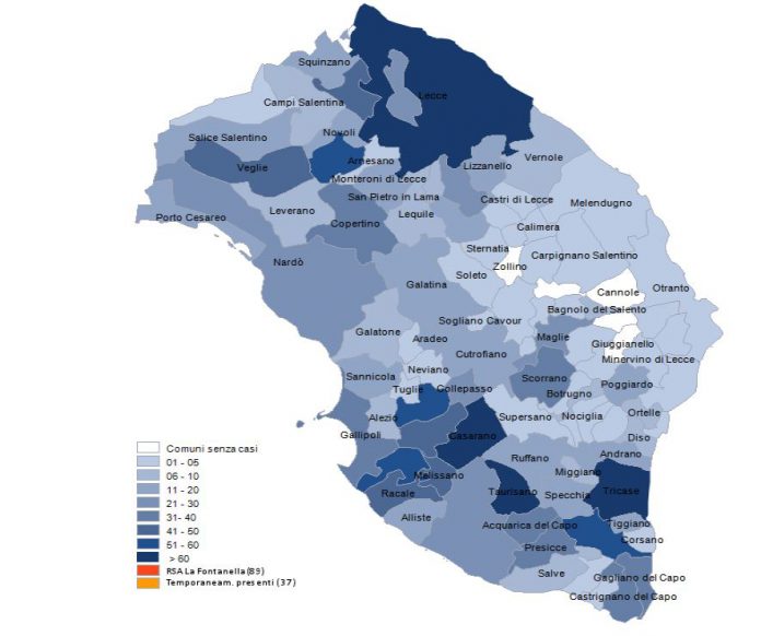 Report covid Asl, 1753 residenti leccesi covid positivi. 206 a Lecce, 80 a Casarano. L’avanzata nei paesi