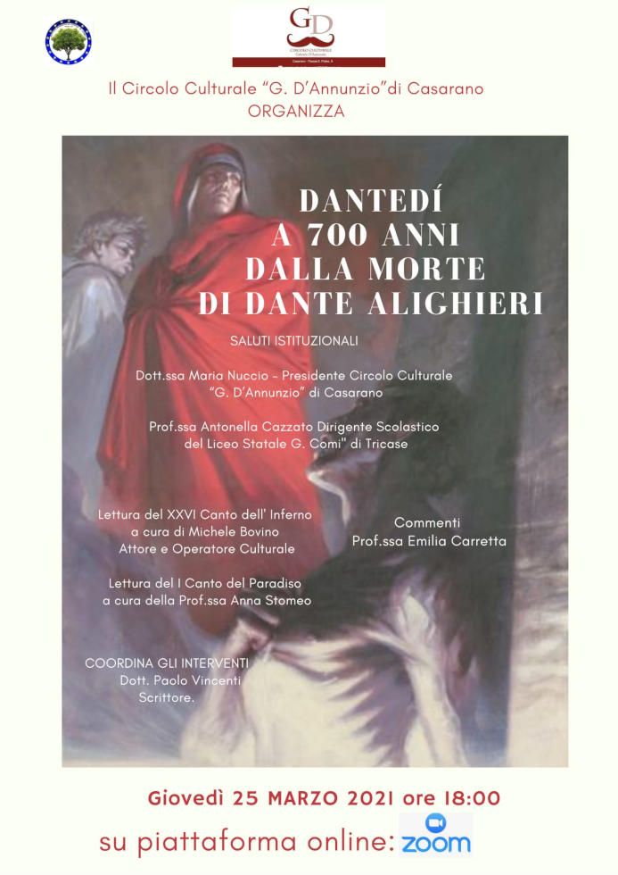 Il Circolo Culturale “G. D’Annunzio” di Casarano celebra i 700 anni dalla morte di Dante Alighieri