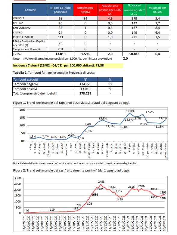 HomePrima PaginaReport covid Asl, 1596 residenti positivi nel leccese. Aumenti più critici a...
