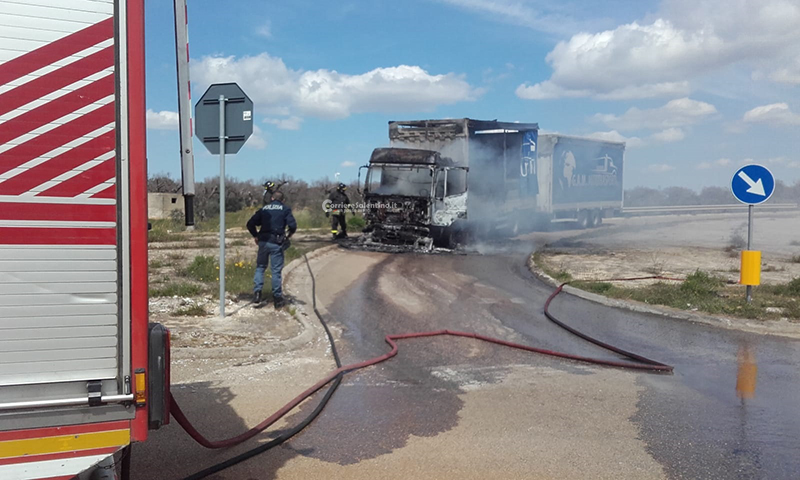 Il camion prende fuoco allo svincolo: paura per un autotrasportatore