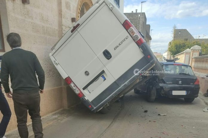 Incidente in Sud Salento: furgone si scontra con auto in sosta e resta incastrato