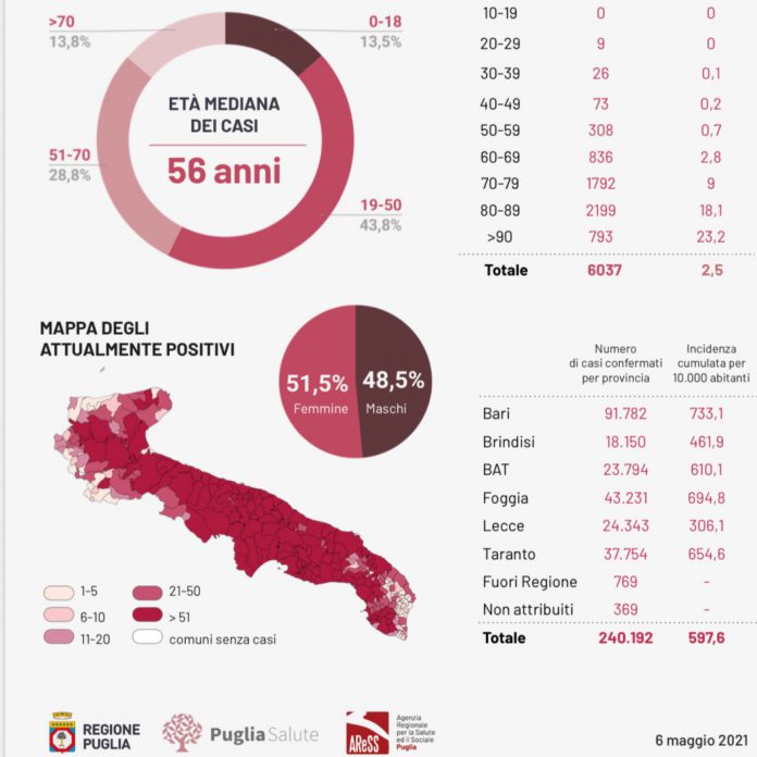 HomePrima PaginaCovid, 877 casi: 203 casi nel leccese. Situazione ancora critica in 15...