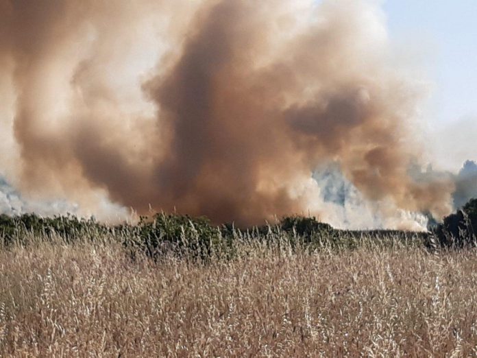 Inferno di fuoco a ridosso della provinciale. Fumo ed odore acre raggiungono la città