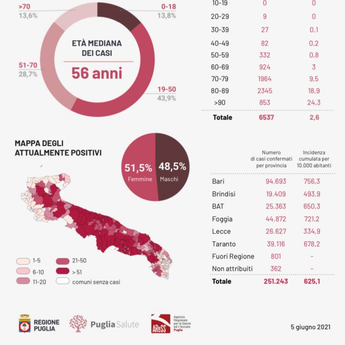 HomePrima PaginaCovid, 161 nuovi casi in Puglia: 39 in provincia di Lecce. La...