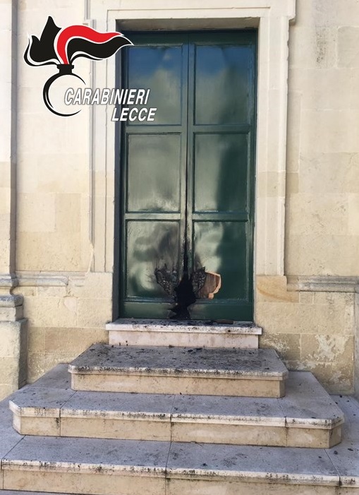 HomeCronacaFiamme sul portone laterale della chiesa Madre: misterioso atto vandalico poco prima...