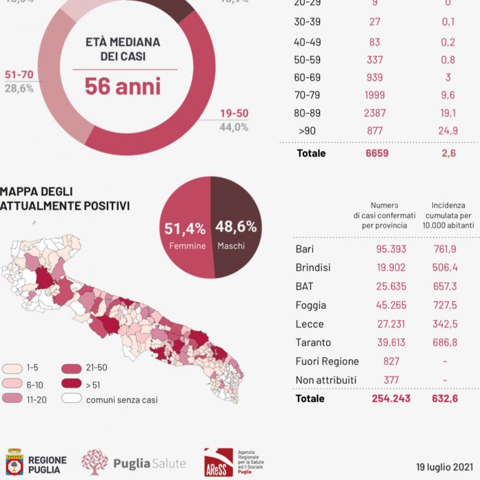 Covid, 47 nuovi casi in Puglia: 22 nel leccese. 76 ricoverati, nessun decesso. Tira e molla sul green pass, c’è chi lo vuole utilizzare ovunque