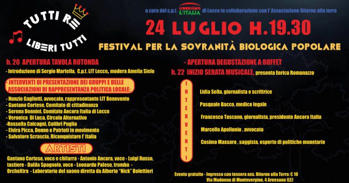 “Tutti Re Liberi Tutti”, Festival per la sovranità biologica e popolare