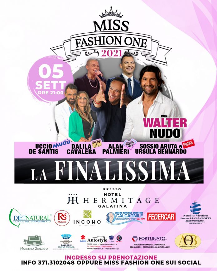 Galatina, torna domenica, 5 Settembre 2021, la finalissima Miss Fashion One: tanti ospiti, da Walter Nudo a Uccio De Santis, fino a Dalila Cavaliera