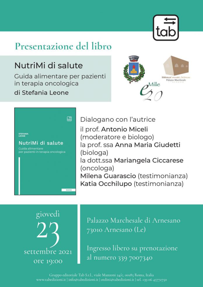 Ad Arnesano la presentazione di “NutriMi di salute” la guida alimentare della dott.ssa Stefania Leone per i pazienti in terapia oncologica
