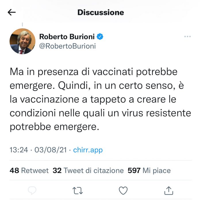 HomePrima PaginaCovid, Burioni: “Senza vaccino mutazioni più contagiose. Vaccinandosi potrebbe emergere un virus...