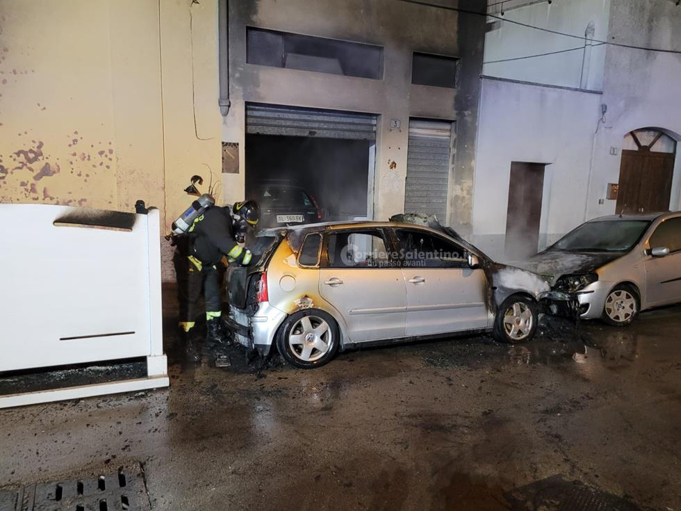 Notte di fuoco nel basso Salento: incendio danneggia due auto, bar e abitazione. Si indaga sulle cause