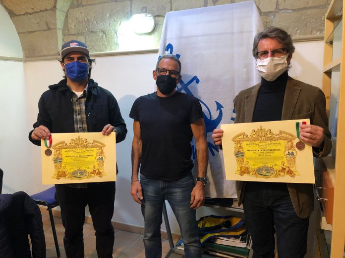 Medaglia di Benemerenza di 3° Classe in Bronzo della Società Nazionale di Salvamento conferita ai Docenti Carlo Morelli e Giorgio Turrisi
