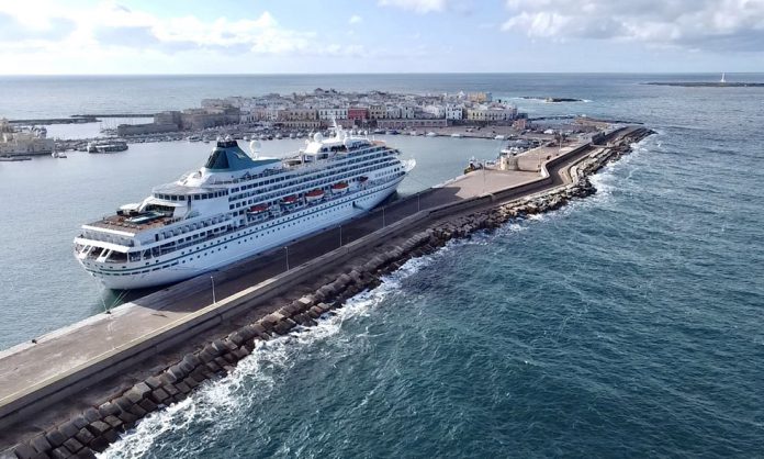 La nave da crociera Amera approda nel porto di Gallipoli