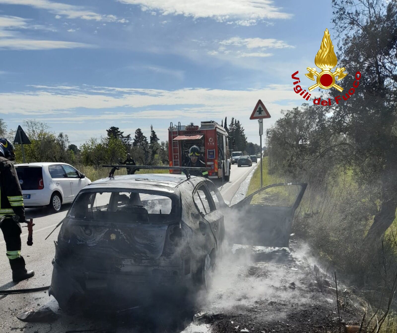 HomeCronacaFumo dal vano motore, poi le fiamme: paura per un automobilista. Veicolo...