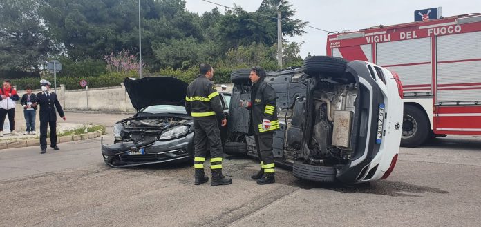 Schianto all’incrocio, una delle due auto si ribalta: corsa in ospedale per un 47enne