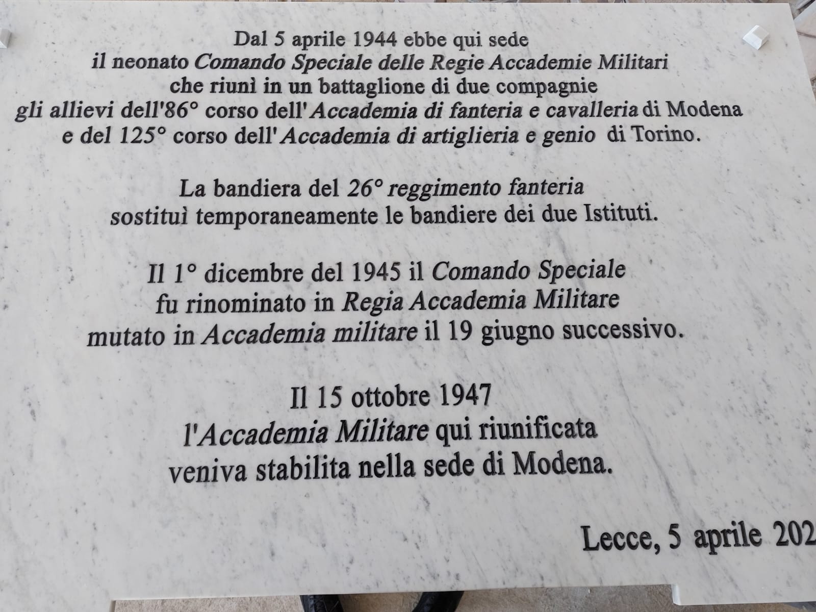 Celebrazione del 78° Anniversario della Costituzione del Comando Speciale delle Regie Accademie Militari in Lecce, presso la Caserma Raffaele Pico