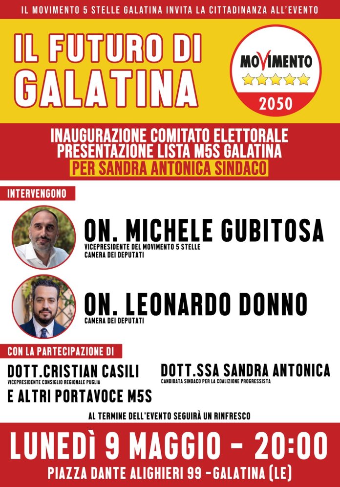 Il Movimento 5 Stelle presenta la lista, inaugura il comitato domani (9 maggio) e ragiona sul futuro di Galatina